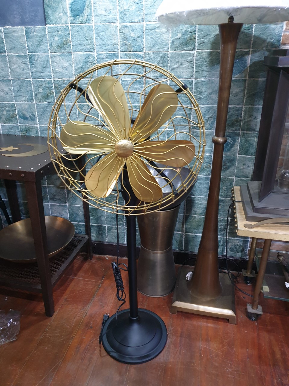 พัดลมทองเหลือง ตะแกรงถี่ หน้า 16นิ้ว ฐาน 30 cm สูงรวม 140cm