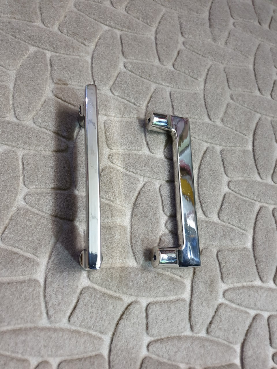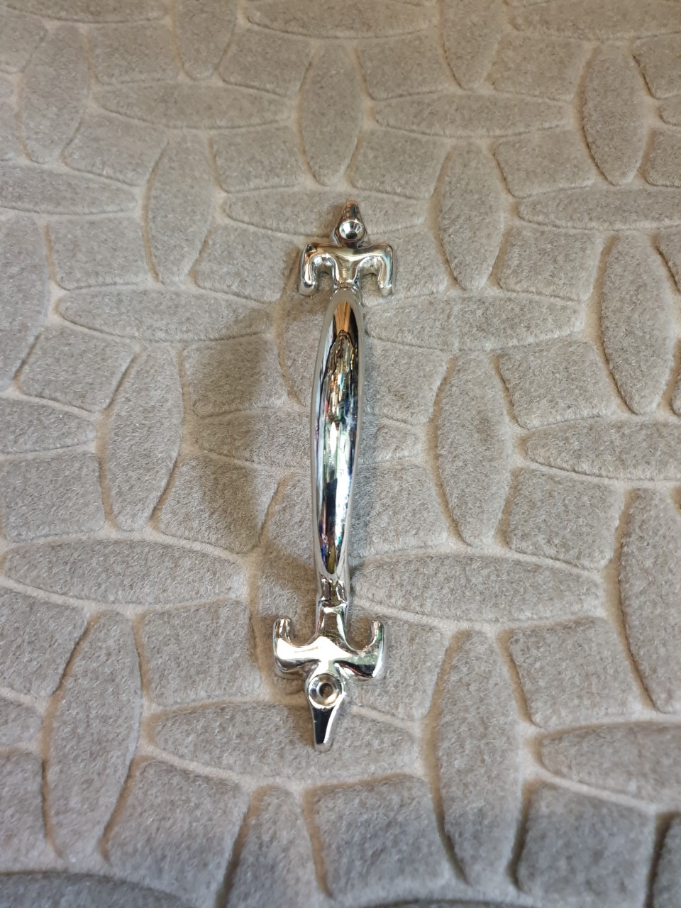 Brass Handle in nickle color finished Code C.020MS size long 114 mm.Thickness 7 mm.leg 14 mm.