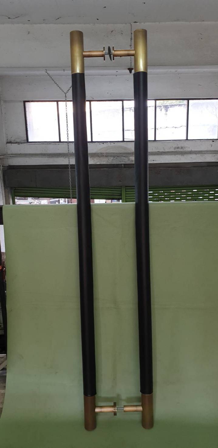 มือจับประตูทองเหลือง ราคาต่อเซต ปลอกสวมหัวท้ายเป็นทองเหลือง ด้ามไม้หุ้มหนังแท้สีดำ รับผลิตมือจับทองเหลืองตามแบบ สนใจสินค้าโทรสอบถามได้ที่ Tel/fax: 02 942 1911,02 570 1987,sale 061 509 5337,084 850 6680