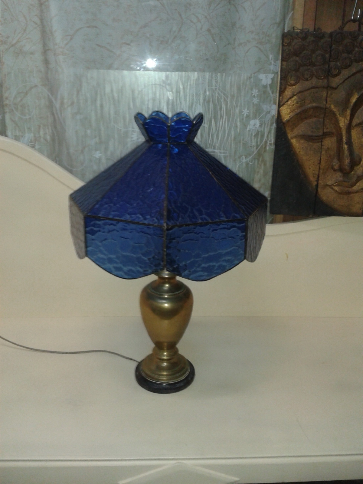 Table Lamp Code TBLAT001 material : Brass with stain glass
