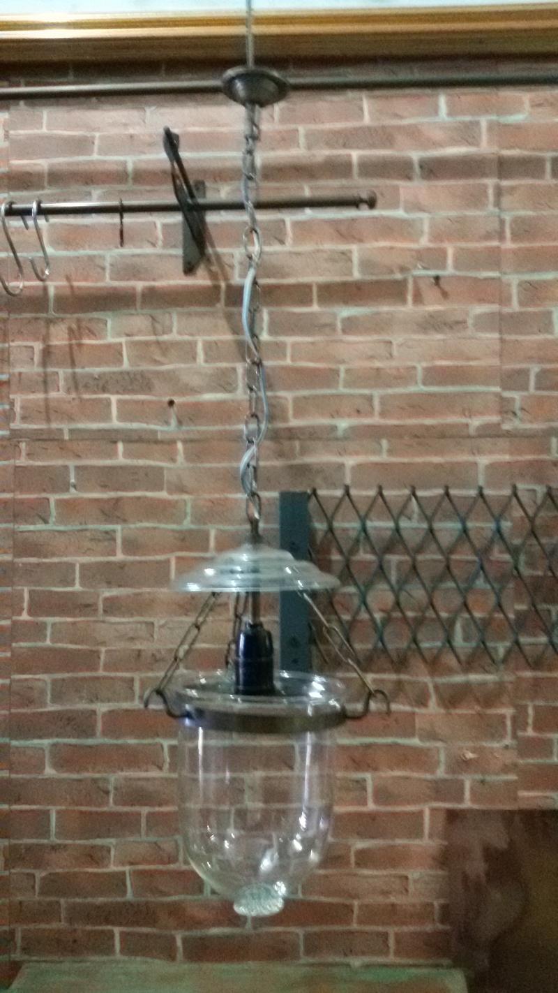Hanging Lamp brass with glass Item Code HGM001G size can be longer .glass 5''wide 14 cm.long 17 cm.