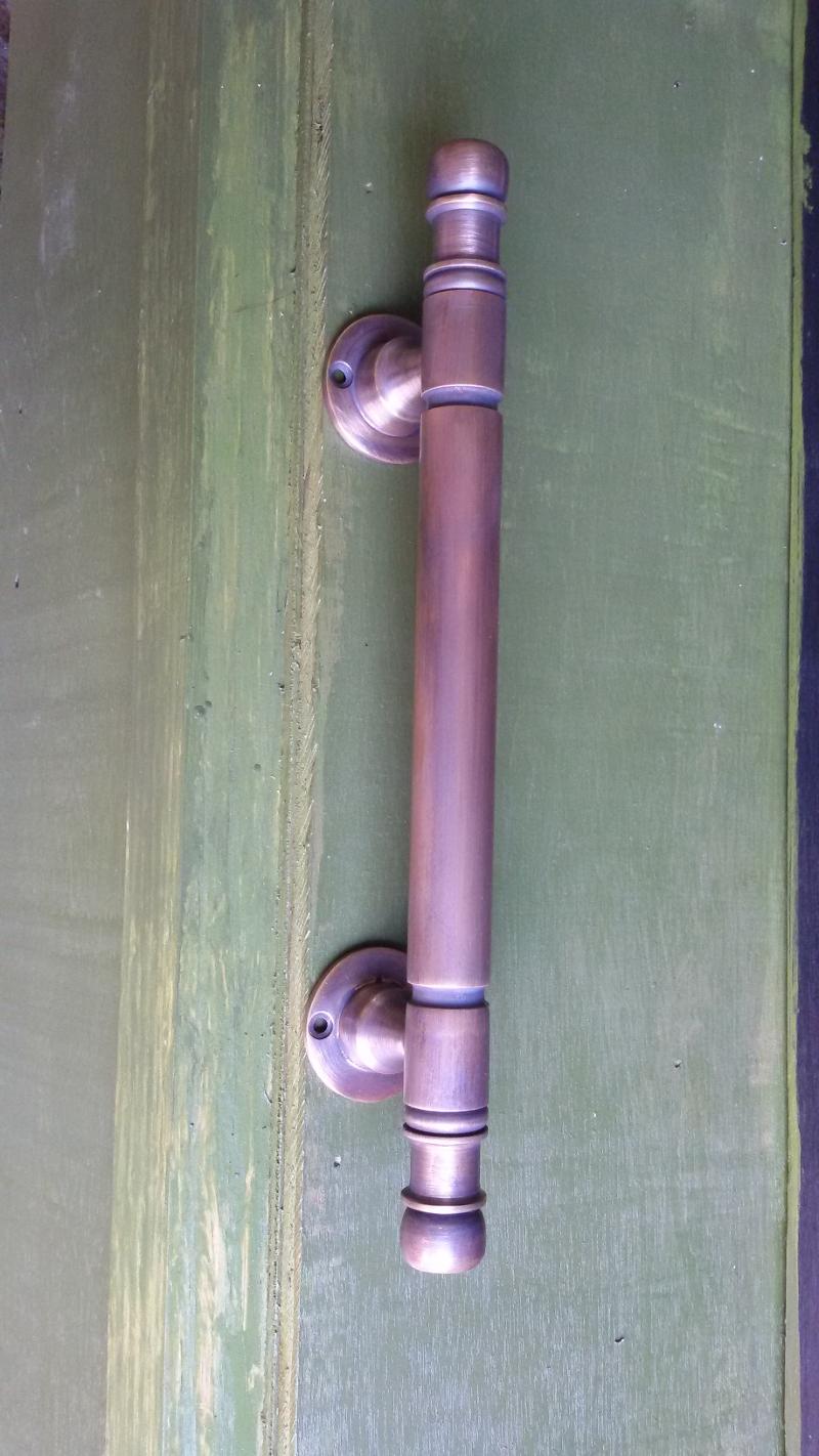 Brass door handle color green antique code AC.053G size long 40 cm.
