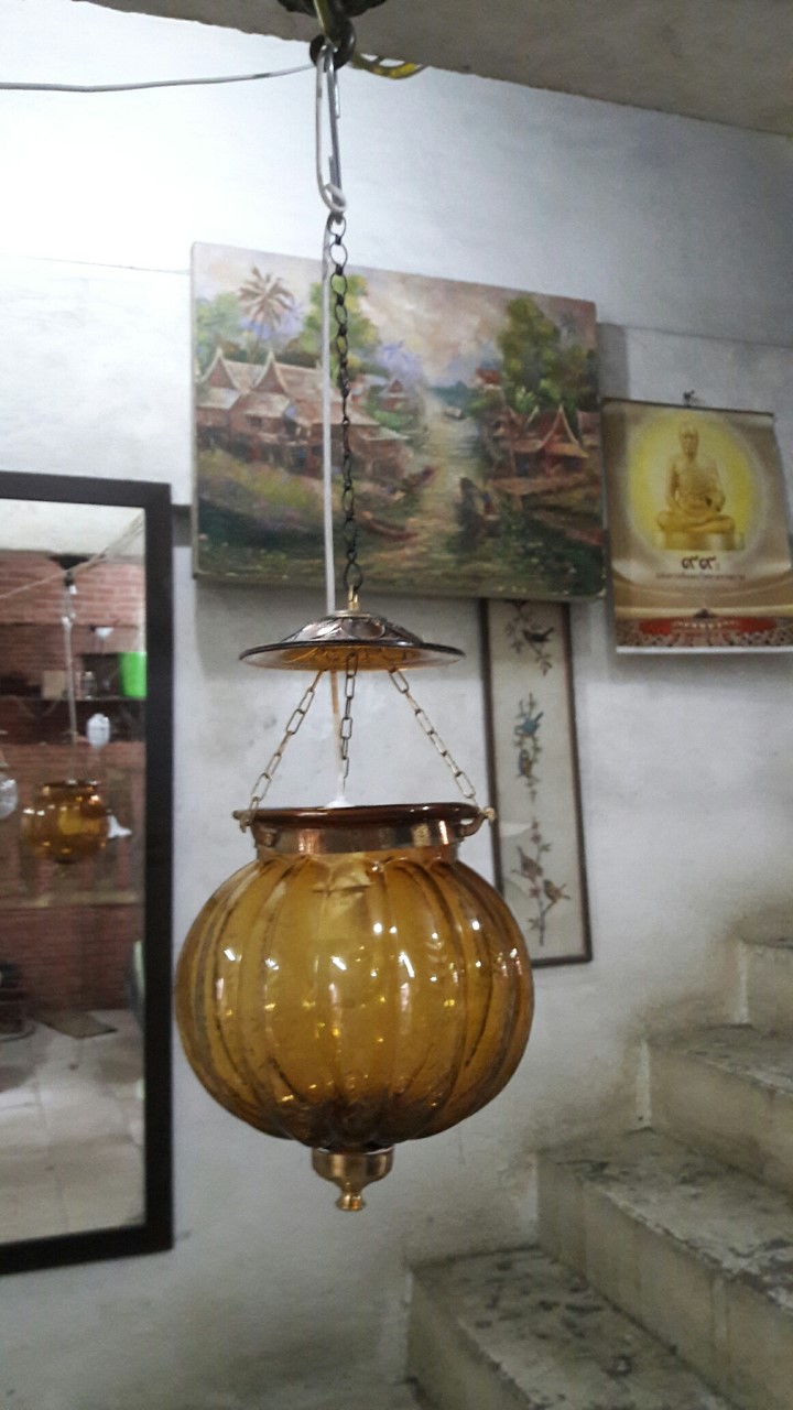 Hanging Lamp brass with glass 8'' shade Item Code HGL18MT size glass 20 x H 28 cm. hole 22 cm.long