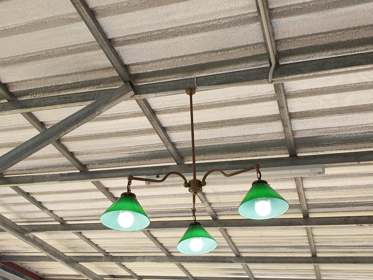Hanging Lamp 3 arm green shade