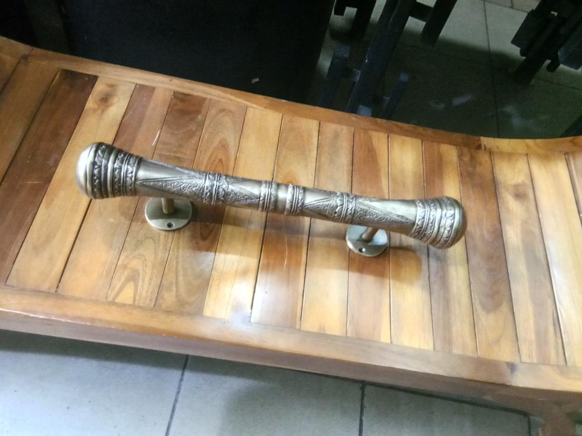 Brass door handle Item Code ACMR10 size long 300 mm. high 45 mm. base 38 mm. Diameter 25 mm.