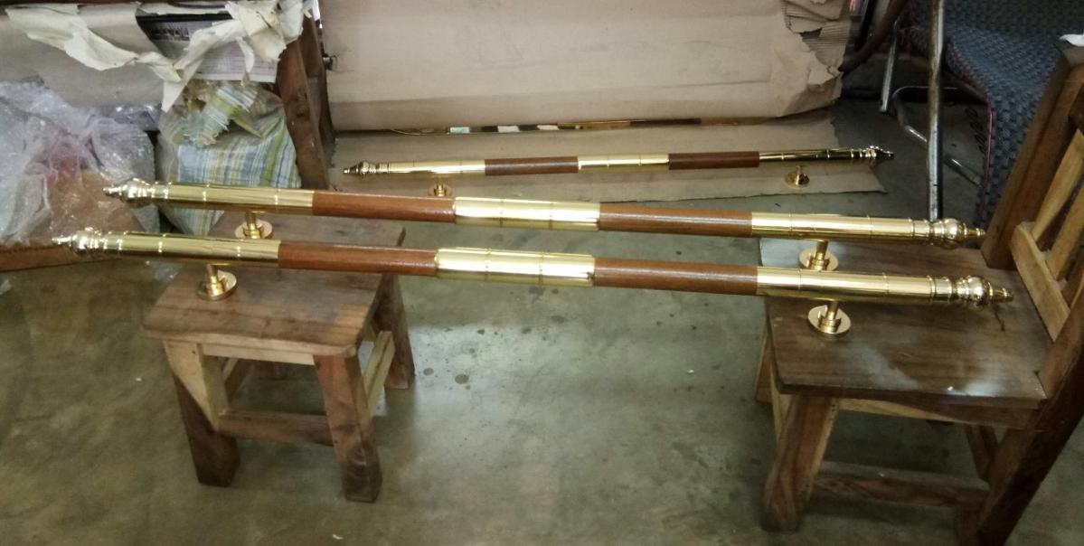 Brass door handle with teak wood Item Code AC025WT size long 1200 mm.diameter 38 mm. base 50 mm.