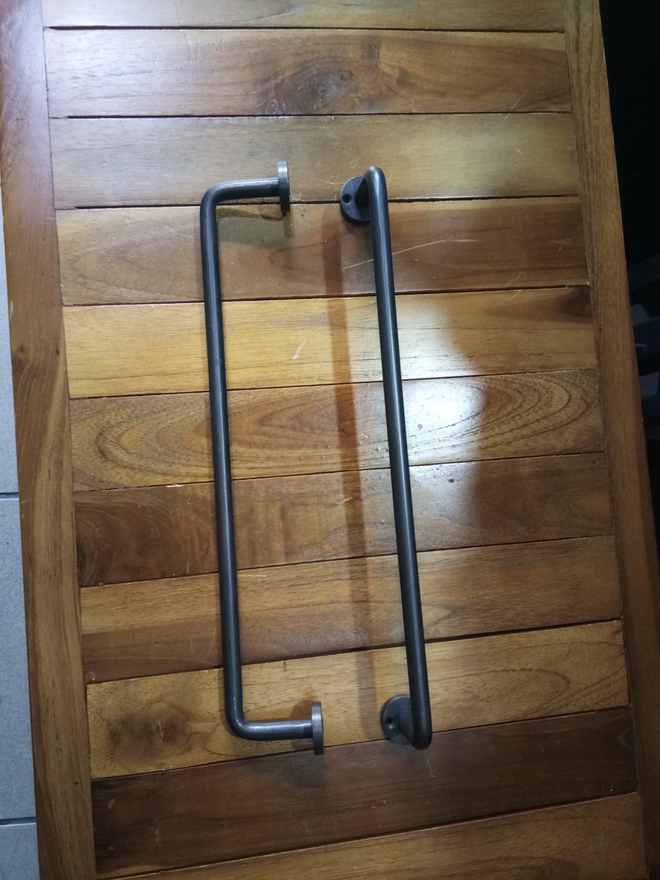 ฺBrass door handle Item Code CMR3 size long 400 mm. Diameter 9 mm.high 50 mm.B 25 mm.